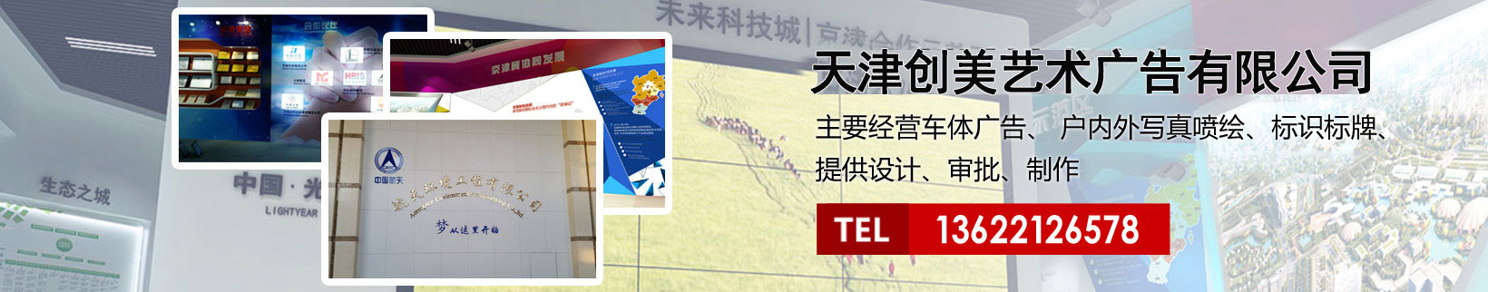 天津創(chuàng)美藝術(shù)廣告有限公司主要經(jīng)營車體廣告、 戶內(nèi)外寫真噴繪、標(biāo)識(shí)標(biāo)牌、提供設(shè)計(jì)、審批、制作、發(fā)布的服務(wù)。